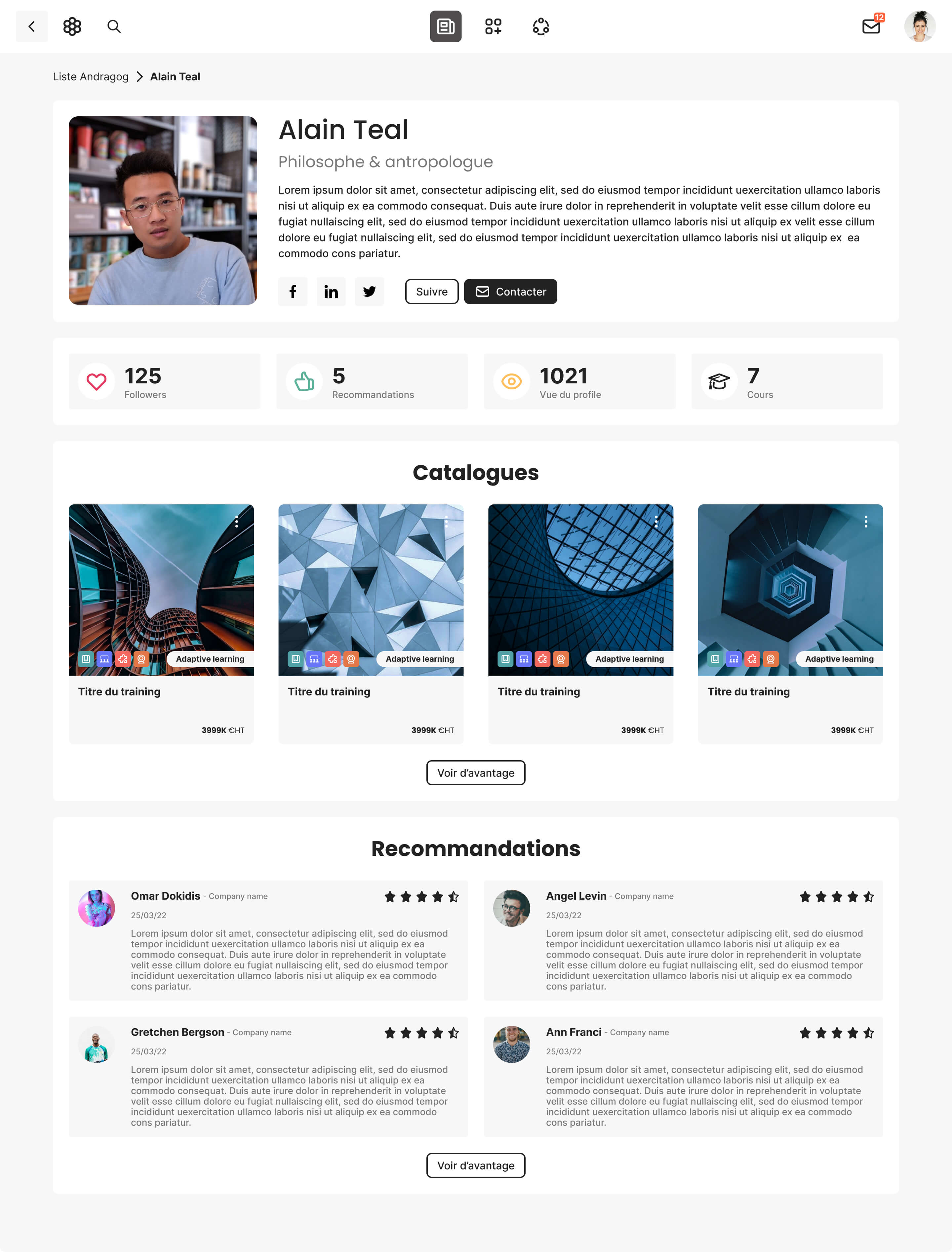 En tant que UI/UX Designer, j'ai collaboré avec Smartch pour concevoir une plateforme Web dédiée à la création et à la vente de cours en ligne. Mon objectif était de créer une expérience utilisateur intuitive et conviviale pour les utilisateurs. J'ai conçu une interface attrayante et fonctionnelle, mettant l'accent sur la facilité de navigation et l'accessibilité des contenus. Grâce à cette plateforme, les formateurs peuvent créer et partager leurs cours, tandis que les apprenants peuvent accéder à une variété de contenus pédagogiques de qualité.